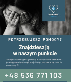 Fundacja Compassio rozpoczęła realizację zadań ze środków Funduszu Pomocy Pokrzywdzonym oraz Pomocy Postpenitencjarnej - Funduszu Sprawiedliwości w zakresie udzielania pomocy osobom pokrzywdzonym przestępstwem oraz osobom im najbliższym, udzielania pomocy świadkom i osobom im najbliższym dla jednostek niezaliczanych do sektora finansów publicznych i niedziałających w celu osiągnięcia zysku, w tym stowarzyszeń, fundacji, organizacji i instytucji na lata 2022-2025.