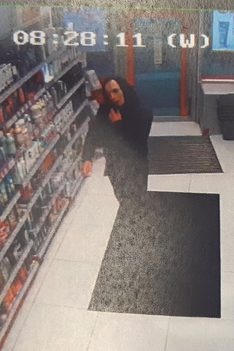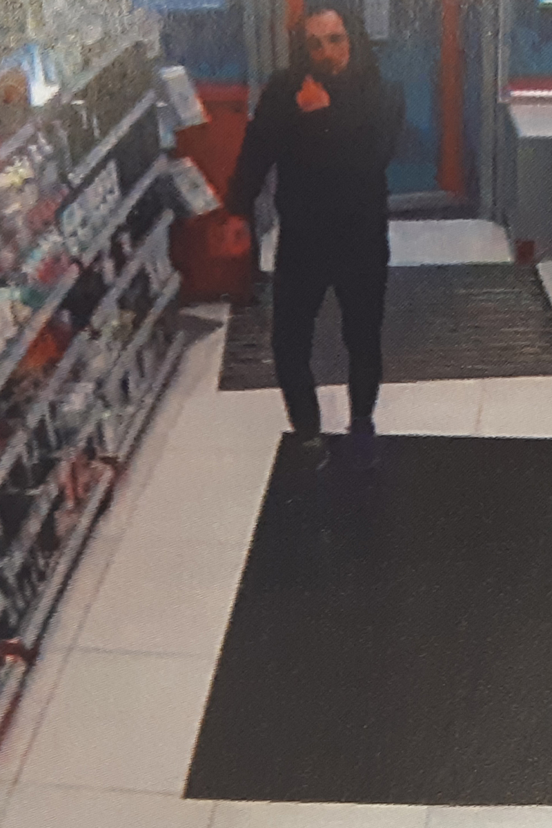 Mężczyzna – wiek około 30-35 lat, wysoki, szczupła budowa ciała; ubrany w czarną kurtkę, czarne spodnie i granatowe buty.