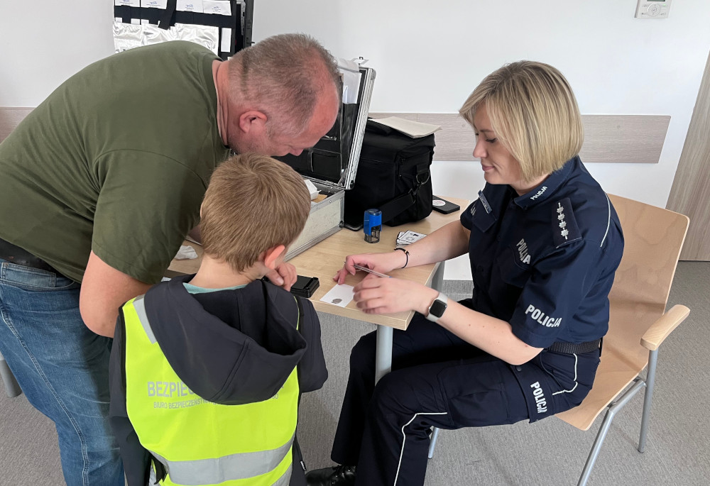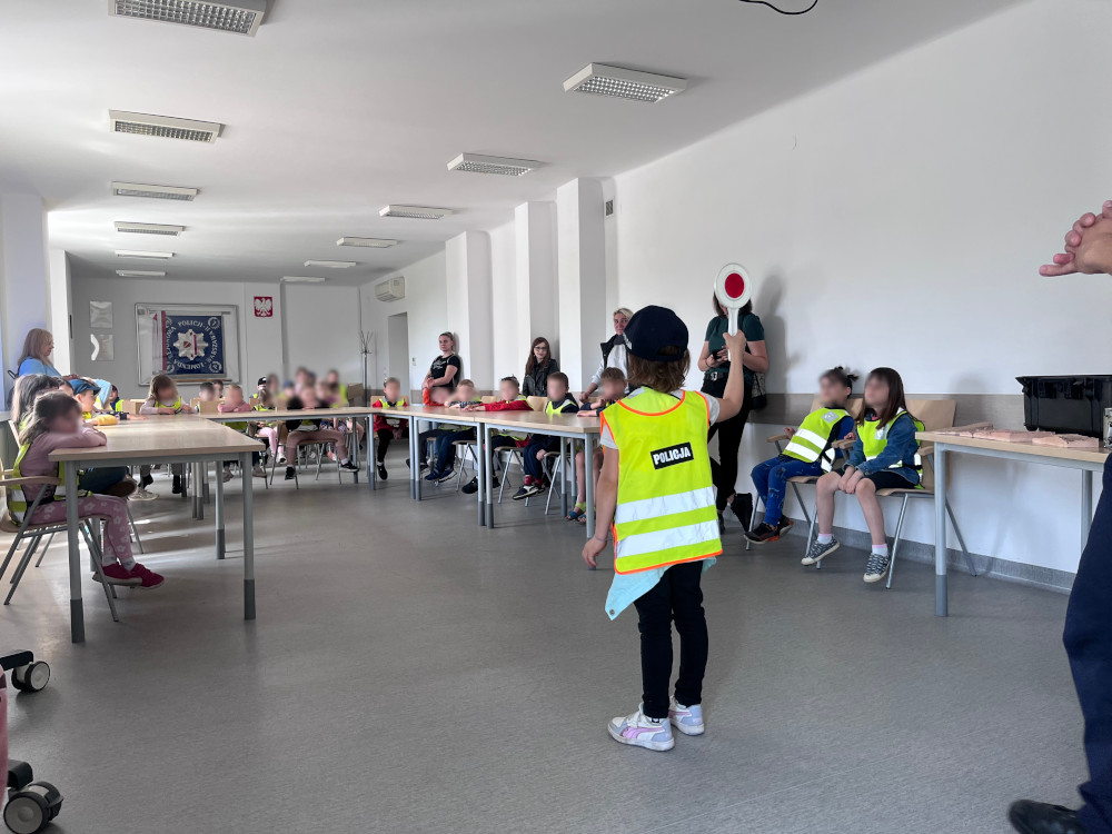 Na koniec dzieci otrzymały swoje legitymacje małych pomocników policjanta, które przypieczętowały odciskiem własnego paluszka oraz odblaski.