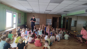 Wysoka temperatura sprzyja spędzaniu wolnego czasu nad wodą. W okresie wakacji to właśnie tego typu forma wypoczynku jest najchętniej wybierana. Najmłodsi rozmawiali o tym, że nie wolno wchodzić do wody bez wiedzy i pozwolenia ich opiekunów. Poznali kolory flag które wywiesza ratownik oraz jak reagować na jego polecenia. Przypomniano, że możemy kąpać się tylko w miejscach do tego wyznaczonych. Nie zabrakło również instruktażu na temat prawidłowego wejścia do wody. Dowiedzieli się, dlaczego tak ważne jest nakrycie głowy na plaży oraz jak prawidłowo uchronić się przed oparzeniem słonecznym. Spotkanie przebiegło w miłej atmosferze, a podopieczni „Służewiaczka” byli aktywni i chętnie odpowiadali na pytania policjanta.
