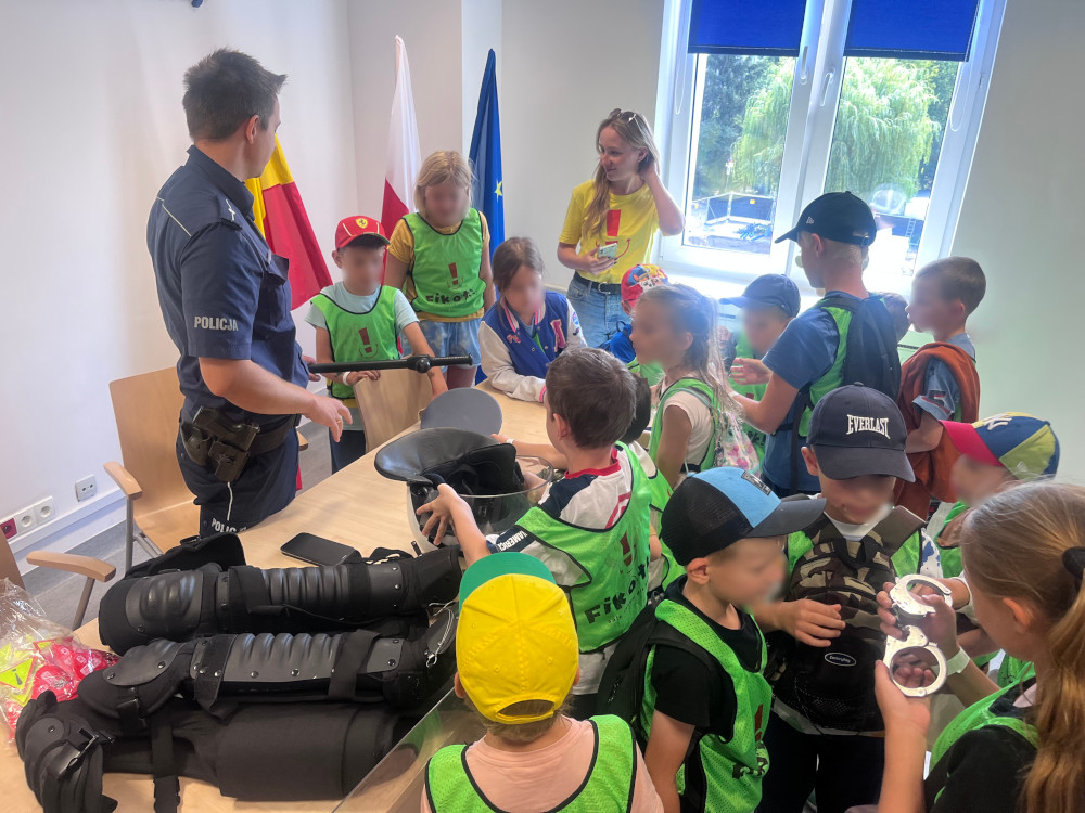 Do Komendy Rejonowej Policji Warszawa II przybyły dzieci spędzające wakacje w ramach akcji ,,Lato w mieście”. Najmłodsi odwiedzili mokotowską Komendę Policji, aby dowiedzieć się, czym charakteryzuje się zawód policjanta. Dzieci obejrzały stanowisko kierowania, pomieszczenia dla osób zatrzymanych, wzięły udział w bardzo ciekawych zajęciach przygotowanych na temat śladów przez technika kryminalistyki, dowiedziały się, jak wygląda struktura mokotowskiej Policji, a także jakie zadania realizują policjanci poszczególnych pionów. Nie obyło się bez ciekawych pytań oraz aktywności ze strony małych gości.