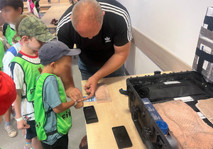 Jak zwykle największą atrakcją cieszyły się zajęcia przygotowane przez technika kryminalistyki na temat śladów. Dzieci dowiedziały się, jak wyglądają odciski palców, jakie ślady zostawiają ludzie i jak można je zabezpieczyć oraz wykorzystać w pracy policyjnej. Goście mokotowskich policjantów mogli przyjrzeć się, jak w sposób praktyczny zabezpiecza się ślady linii papilarnych za pośrednictwem pędzelka i specjalistycznego proszku oraz poznać, czym jest proszek fluorescencyjny i w jakich warunkach go widać.