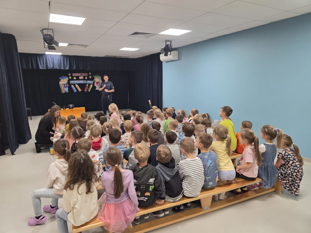 Podczas zajęć dzieci chętnie odpowiadały na pytania funkcjonariusza, wspólnie analizowały przykładowe sytuacje i uczyły się, jak reagować w razie zagrożenia. Policjant wyjaśnił również, czym zajmują się funkcjonariusze Policji, w jaki sposób pomagają ludziom w trudnych sytuacjach, jak przebiega ich codzienna służba oraz jakie wyposażenie mają podczas interwencji. Mali uczestnicy mogli z bliska obejrzeć policyjny mundur, odznakę oraz sprzęt używany przez funkcjonariuszy w pracy. Dużą atrakcją była prezentacja radiowozu, do którego dzieci mogły wejść i poczuć się jak prawdziwi policjanci.
