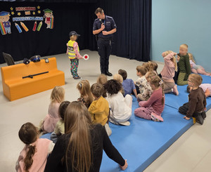 Celem wizyty było przybliżenie dzieciom zasad bezpiecznego zachowania w domu, przedszkolu oraz podczas codziennych spacerów i zabaw. Policjant w przystępny sposób tłumaczył, jak należy zachować się na drodze, dlaczego nie wolno rozmawiać z obcymi i jak rozpoznać sytuację niebezpieczną. Przedszkolaki dowiedziały się także, dlaczego warto nosić odblaski i jak duże znaczenie mają one dla widoczności pieszych po zmroku.