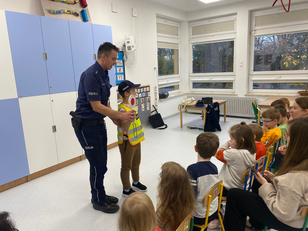 Mali słuchacze i wielka nauka – policjant z wizytą u przedszkolaków
