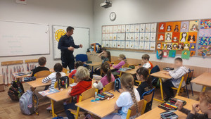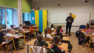 Nie zabrakło rozmów na temat bezpieczeństwa w domu i w szkole. Mł. asp. Łukasz Urbanek przypomniał uczniom, jak bezpiecznie korzystać z urządzeń elektrycznych i Internetu. Uczniowie aktywnie uczestniczyli w spotkaniu, chętnie odpowiadali na pytania oraz dzielili się swoimi doświadczeniami.