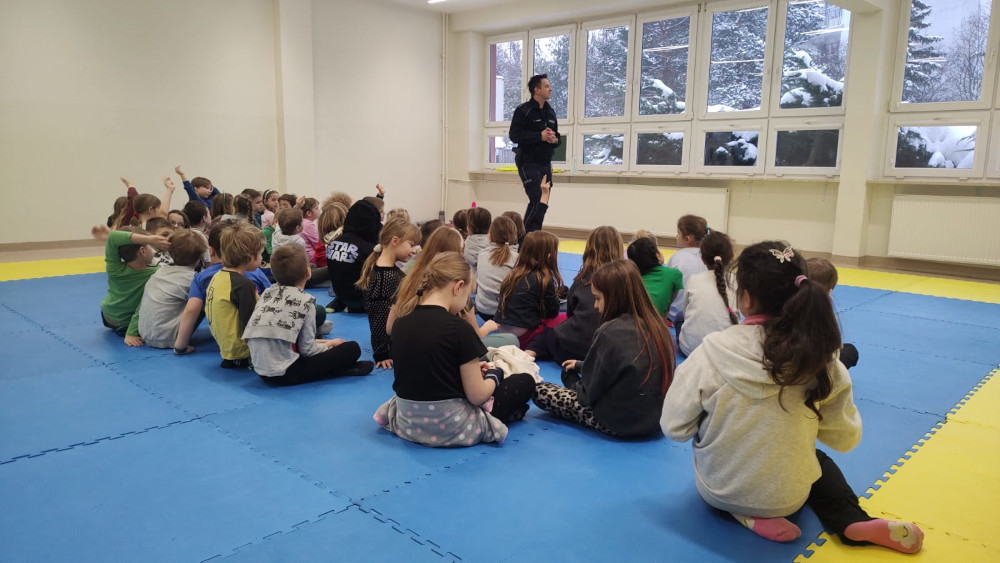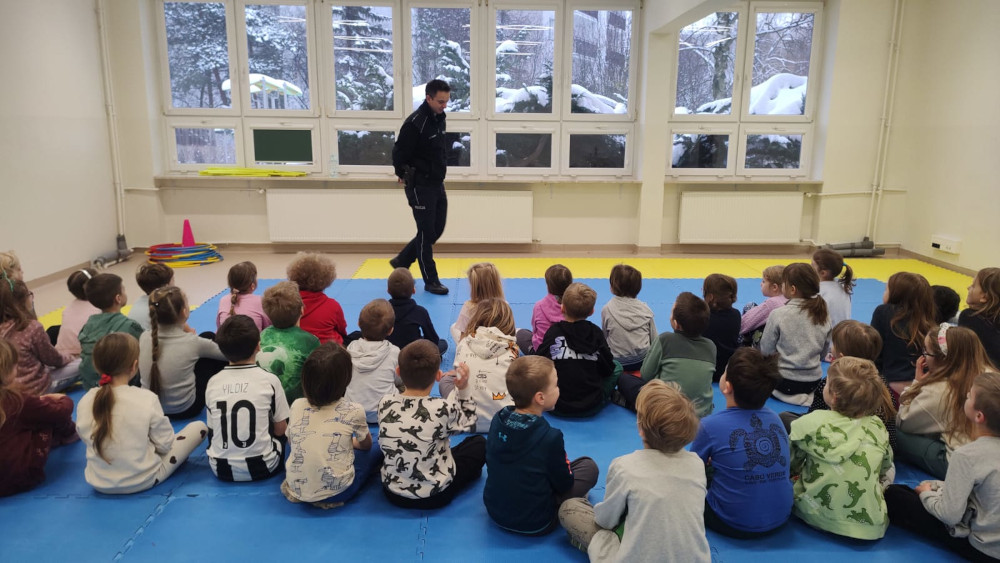 Podczas zajęć funkcjonariusz rozmawiał z najmłodszymi o zasadach bezpiecznego wypoczynku zimowego. Uczniowie dowiedzieli się, jak unikać sytuacji niebezpiecznych podczas zabaw na śniegu i lodzie. Policjant zwrócił szczególną uwagę na zagrożenia związane z wchodzeniem na zamarznięte zbiorniki wodne, takie jak stawy, jeziora czy rzeki, oraz podkreślili, że lód nigdy nie daje gwarancji bezpieczeństwa.