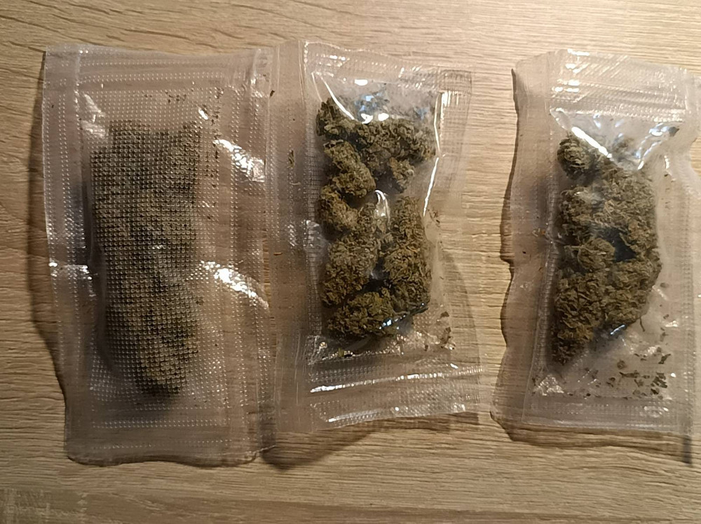 Mężczyzna przyznał, że posiada przy sobie środki odurzające i dobrowolnie wydał foliowy woreczek z suszem roślinnym koloru brunatno-zielonego. Wstępne badanie zabezpieczonej substancji testerem narkotykowym potwierdziło, że jest to marihuana.