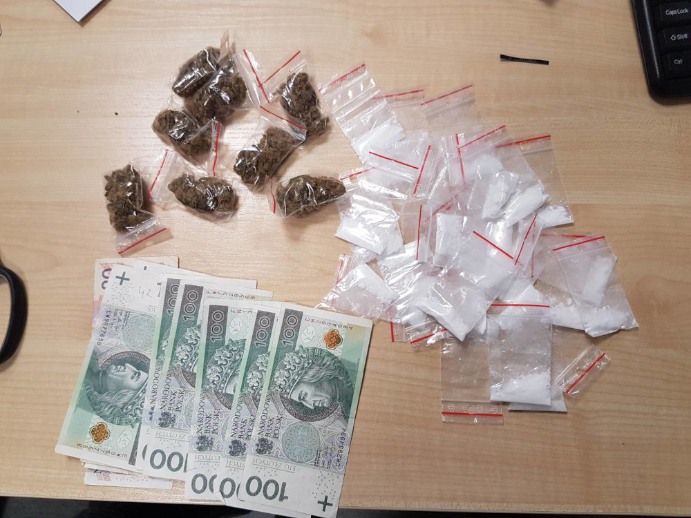 Zatrzymany trafił do policyjnej celi. Wstępne badanie testerem wykazało, że zabezpieczone substancje to marihuana o łącznej wadze blisko 34 gramów oraz kokaina o łącznej wadze ponad 20 gramów. Dodatkowo przy mężczyźnie zabezpieczono gotówkę w kwocie 890 złotych na poczet przyszłych kar.