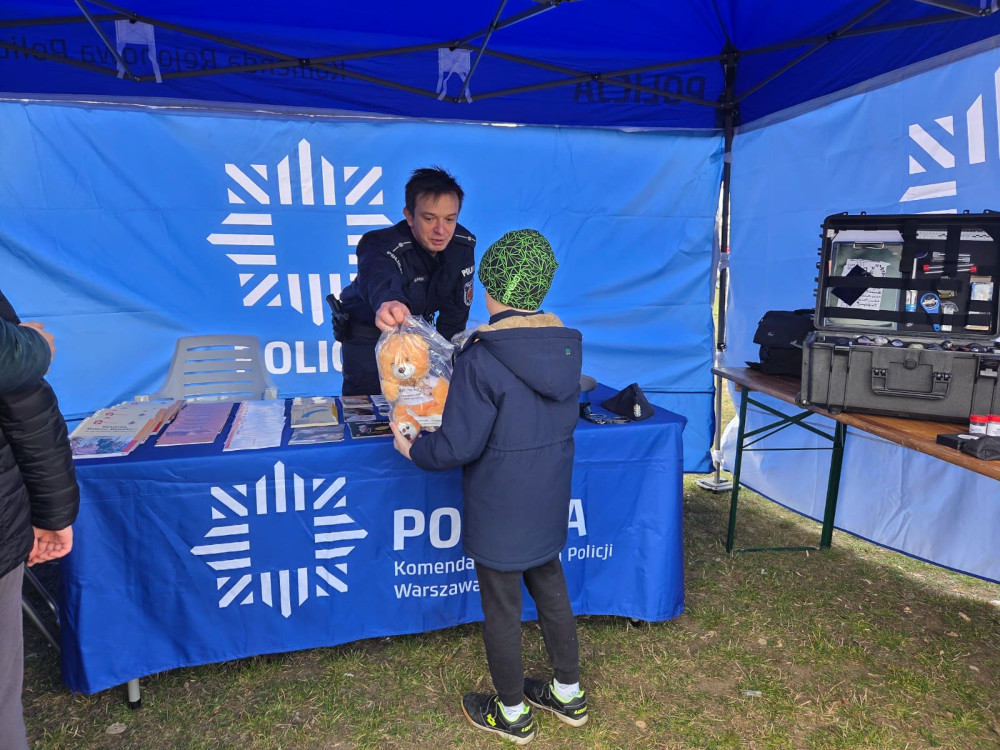 Udział w pikniku zorganizowanym przez Ośrodek Edukacji Kulturalnej Sadyba dla mieszkańców dzielnicy z okazji powitania wiosny był okazją do zaprezentowania policyjnego sprzętu, ale także do porozmawiania na temat bezpieczeństwa. Przy stoisku policyjnym, nie zabrakło zabaw, konkursów i rozmów o bezpieczeństwie. Dzieci miały również okazję zobaczyć kajdanki, przymierzyć czapkę i zrobić sobie zdjęcie z mundurowymi. Technik kryminalistyki zdradzał niektóre arkana swojej pracy i pozwalał na chwilę wcielić się dzieciom w „małego policjanta technika”.