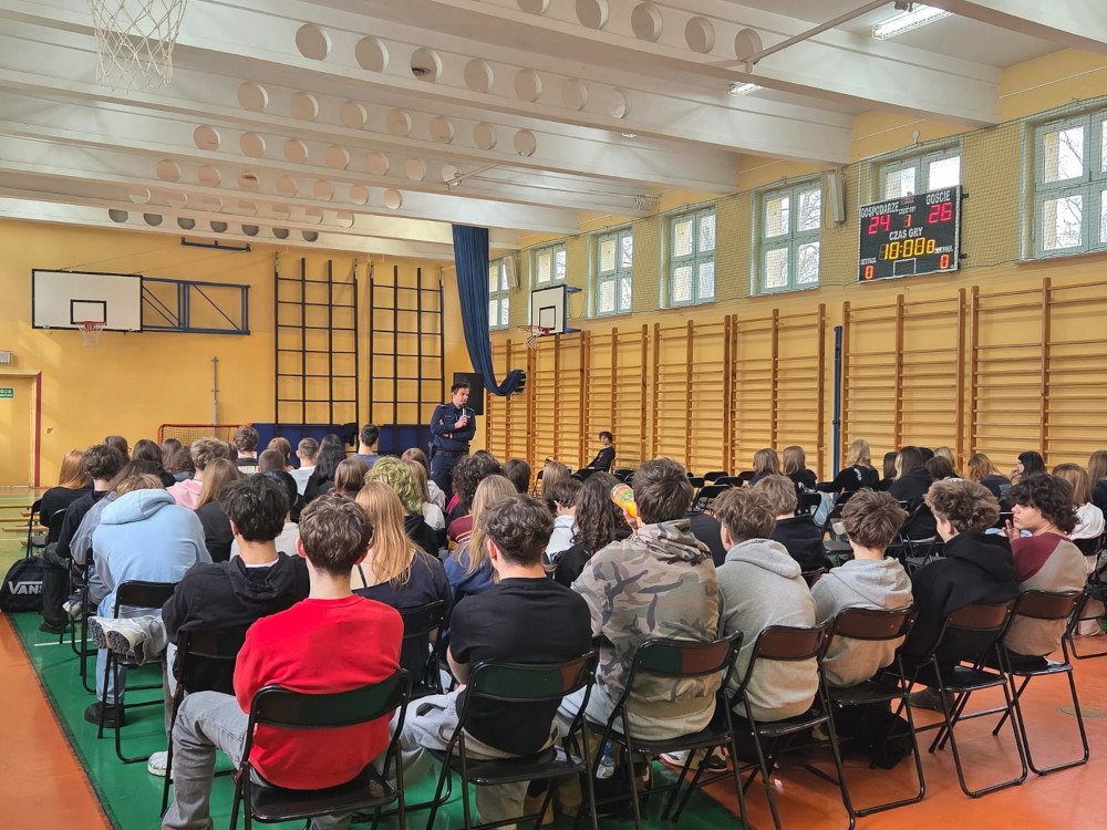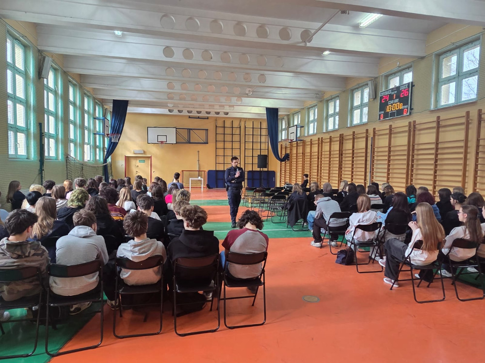 Policjant zajmujący się profilaktyką przeprowadził spotkanie z uczniami w XLIII Liceum Ogólnokształcącym na warszawskim Mokotowie. Wizyta miała na celu podnoszenie świadomości prawnej młodych ludzi. Była również okazją do rozmowy z młodzieżą na temat możliwości wstąpienia w szeregi stołecznej Policji oraz budowania swojej ścieżki zawodowej w formacji.