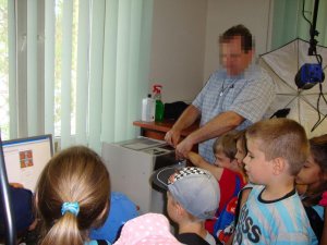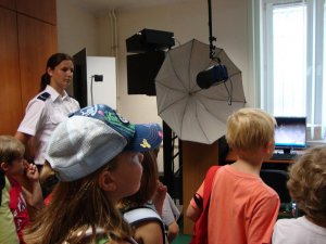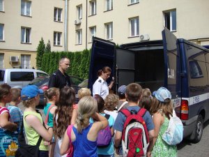 Policjanci przygotowali dla dzieci mnóstwo atrakcji i niespodzianek. Maluchy miały okazję obejrzeć radiowóz, pomieszczenia dyżurnego, a także przekonać się, na czym polega praca operatora miejskiego monitoringu. O swojej pracy opowiedział również policyjny technik, który pokazał jaki sprzęt stosuje w swojej pracy. Największą atrakcją okazało się odbicie linii papilarnych i zrobienie „profesjonalnego” zdjęcia u policyjnego specjalisty.