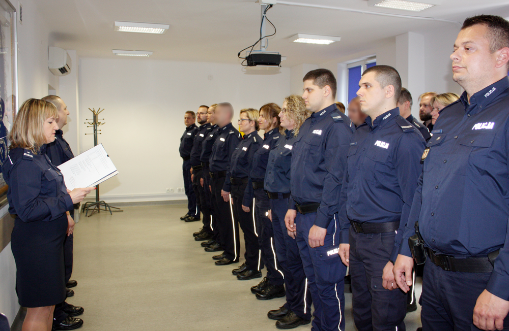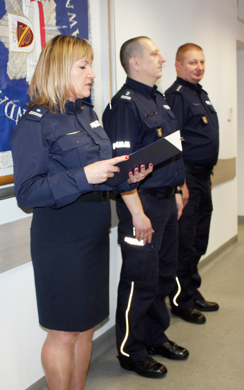 Komendant podziękował wszystkim awansowanym oraz wyróżnionym policjantkom za ofiarność i rzetelność w wykonywaniu obowiązków służbowych a także za wzorową i godną naśladowania służbę, dodając, że to wielka przyjemność móc nagradzać funkcjonariuszy i kierować tak profesjonalnym zespołem. Kończąc swoją wypowiedź młodszy inspektor Kaszowicz życzył wszystkim awansowanym i nagrodzonym sukcesów w dalszej służbie oraz wszelkiej pomyślności.