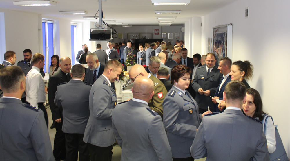 Po części oficjalnej głos zabrał Kapelan Komendy Stołecznej Policji Ks. Józef Jachimczak, który jak co roku opowiedział o istocie Świąt Bożego Narodzenia, symbolice opłatka oraz wzajemnym szacunku. Po podzieleniu się opłatkiem i kolędach znalazł się czas na rozmowy przy wigilijnym stole.
