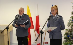 Następnie głos zabrał I Zastępca Komendanta Stołecznego Policji, który podkreślił, że w obecnej sytuacji policjanci niejednokrotnie pracują podwójnie, żeby zapewnić bezpieczeństwo mieszkańcom. Komendant wyraził wdzięczność i podziękowania za rzetelne realizowanie obowiązków służbowych wszystkim policjantkom, policjantom oraz pracownikom cywilnym, a następnie złożył życzenia zdrowych, pogodnych i rodzinnych Świat Bożego Narodzenia oraz wszelkiej pomyślności w zdrowiu i spokoju. Do życzeń świątecznych oraz noworocznych przyłączyli się również burmistrzowie dzielnic Mokotów i Ursynów oraz pozostali goście.