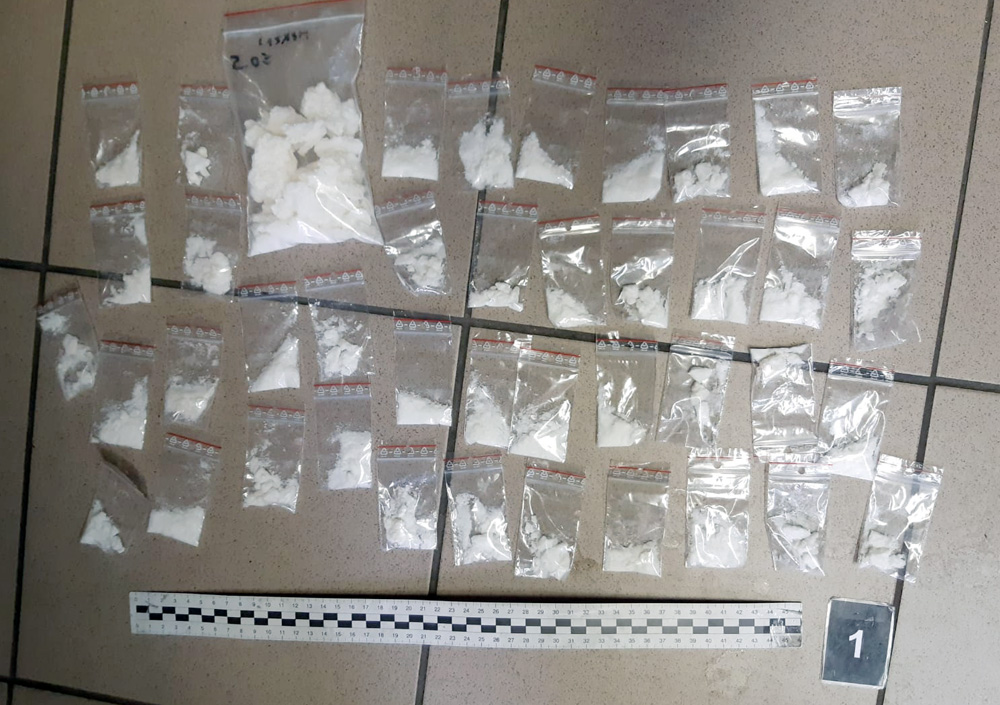 Ursynowscy kryminalni zatrzymali 29-latka podejrzanego o posiadanie znacznej ilości syntetycznego narkotyku będącego odpowiednikiem kokainy. Policjanci mieli informację, że mężczyzna może zajmować się dystrybucją tego, bardzo groźnego, środka odurzającego. W jego mieszkaniu w pojemniku na odżywki dla sportowców oraz w sejfie ukrytym w szafie znaleźli ponad 70 porcji przygotowanych do sprzedaży, 23 tabletki, aptekarską wagę elektroniczną oraz akcesoria świadczące o prowadzeniu działalności. Mężczyzna usłyszał zarzuty i został tymczasowo aresztowany. Grozi mu kara do 10 lat więzienia.