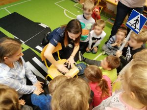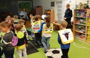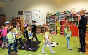 Dzielnicowe, opowiadając maluchom o tym, jak powinno się przechodzić przez jezdnię i który kolor sygnalizatora pozwala wejść na pasy, Pokazywały najmłodszym słuchaczom znaki drogowe oraz tłumaczyła, jak należy bezpiecznie podróżować pieszo. Podczas zajęć dzieci dowiedziały się jak bezpiecznie pokonać tzw. zebrę. Przedszkolaki poznały też zasadę przechodzenia przez jezdnie w miejscu dozwolonym tam, gdzie nie ma pasów, którą stroną jezdni należy chodzić, jeśli nie ma chodnika oraz o tym, że nie można się bawić w pobliżu drogi, a podróżować w jej pobliżu można tylko w towarzystwie rodziców lub dorosłych opiekunów. Policjantka przypomniała dzieciom o zaletach elementów odblaskowych, które powinien nosić każdy na odzieży zewnętrznej w porze wieczorowo nocnej oraz o numerze alarmowym na Policję, który już był doskonale znany najmłodszym słuchaczom.