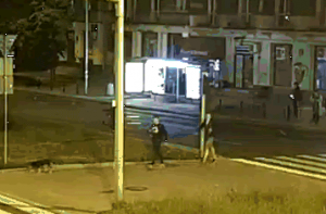 Pierwszy z nich ubrany był w ciemne, dresowe spodnie, ciemne sportowe buty i ciemną sportową bluzę z dużym jasnym napisem "Manto" znajdującym się na wysokości klatki piersiowej. Mężczyzna był z psem ciemnej maści i nieokreślonej bliżej rasy. Drugi z mężczyzn mógł mieć około190 cm wzrostu. Ubrany był w ciemną, rozpinaną bluzę, jasny t-shirt, szare spodenki do kolan oraz ciemne, sportowe buty.