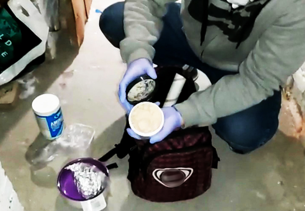 Młodszy z podejrzanych miał przy sobie woreczki z amfetaminą i mefedronem. Drogi dysponował pękiem kluczy, który porzucił w trakcie próby oddalenia się. Jeden z nich pasował do piwnicy, w której znajdował się plecak. Wewnątrz funkcjonariusze znaleźli haszysz, amfetaminę, mefedron i dwie wagi elektroniczne. Łącznie zabezpieczono ponad kilogram narkotyków oraz kilkaset złotych w poczet przyszłych kar.
