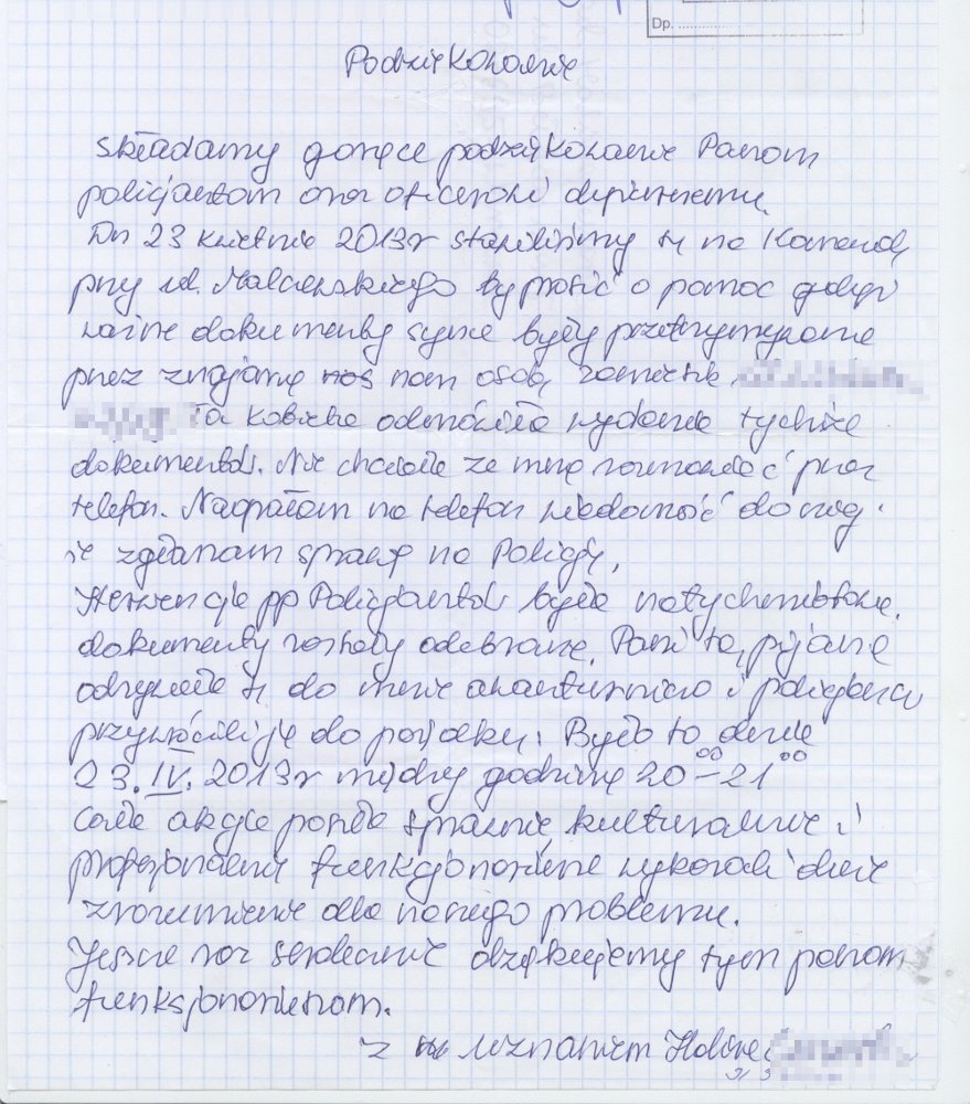 Podziękowanie za interwencję - Podziękowania, życzenia, listy -