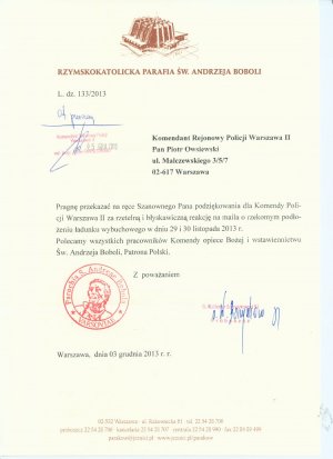 Podziękowanie za interwencję - Podziękowania, życzenia, listy -