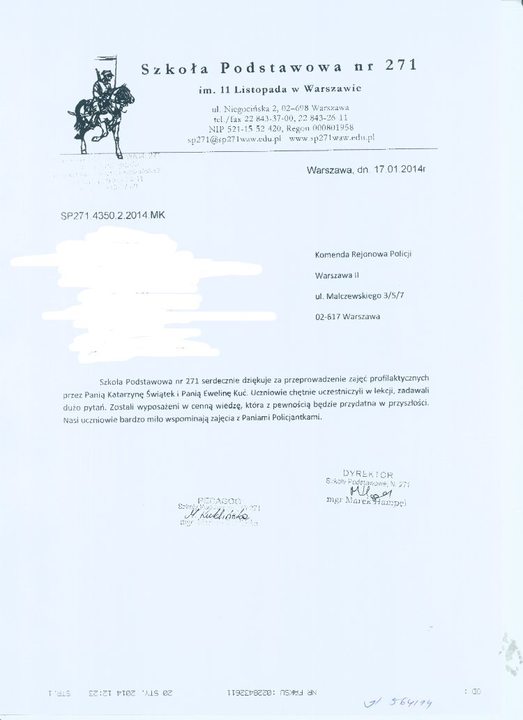 Podziękowanie za zajęcia profilaktyczne - Podziękowania, życzenia, listy -
