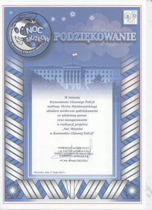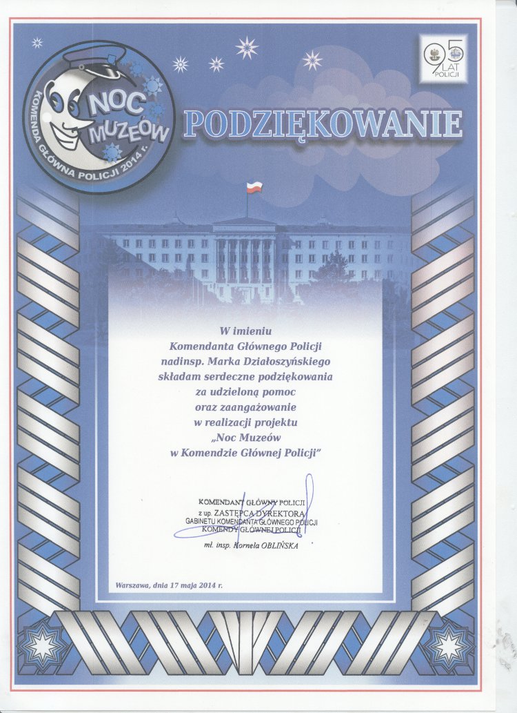 Podziękowanie za pomoc przy realizacji „Nocy Muzeów w KGP” - Podziękowania, życzenia, listy -