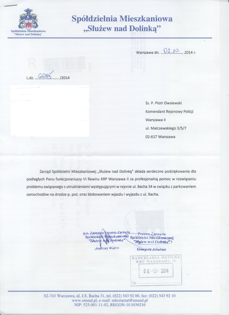 Podziękowanie dla dzielnicowych - Podziękowania, życzenia, listy -