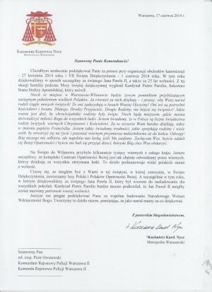 - Podziękowanie od Kazimierza Kardynała Nycza Dodano: 21.07.2014